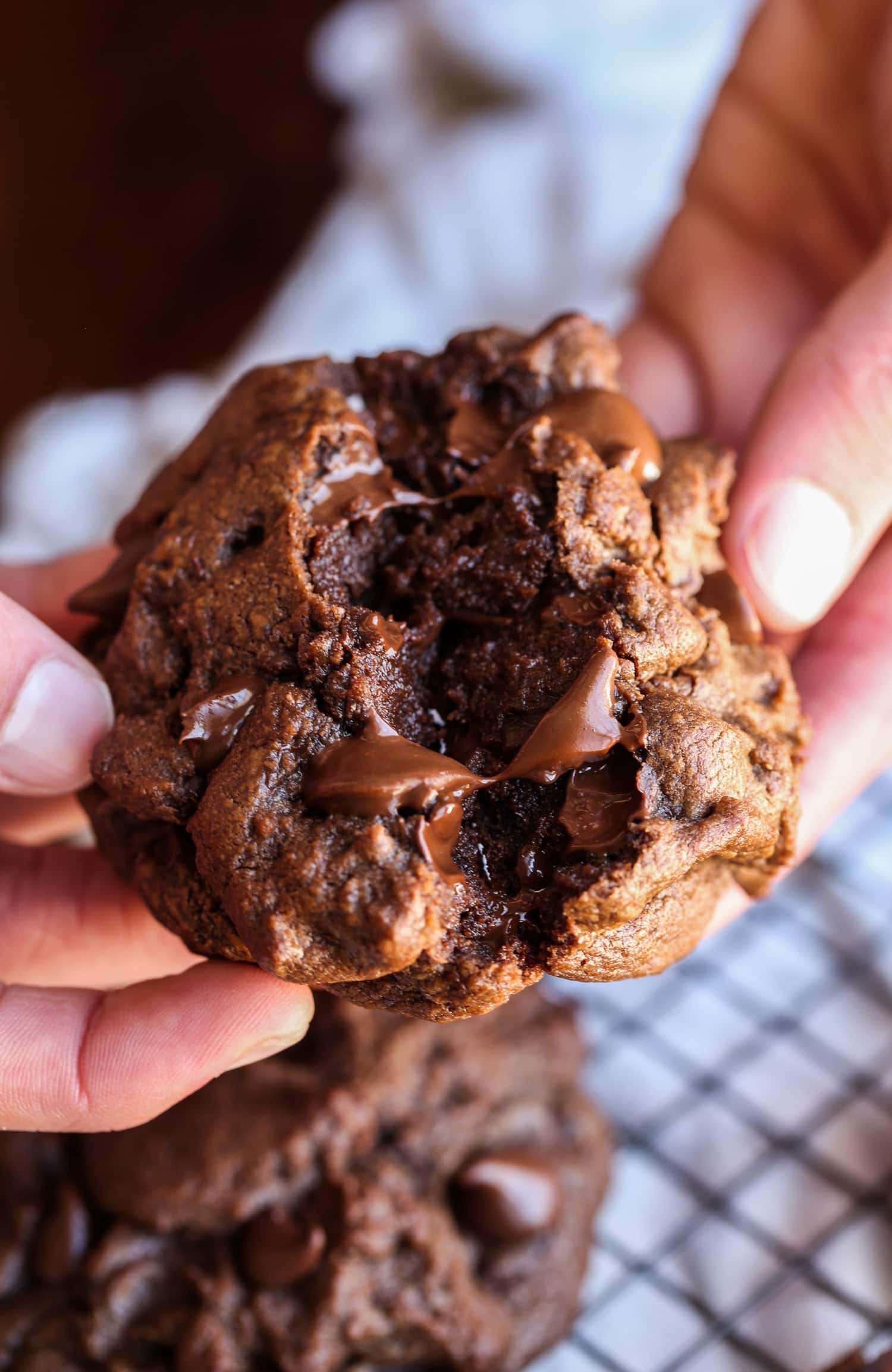 - In the bowl of your stand mixer fitted with the paddle attachment, mix together the butter, brown sugar, and granulated sugar on medium speed for 3 minutes. Add in the eggs, vanilla, salt, cocoa powder, corn starch, and baking soda. Mix for 1 minute until combined and smooth, scraping the sides and bottom of the bowl as necessary.