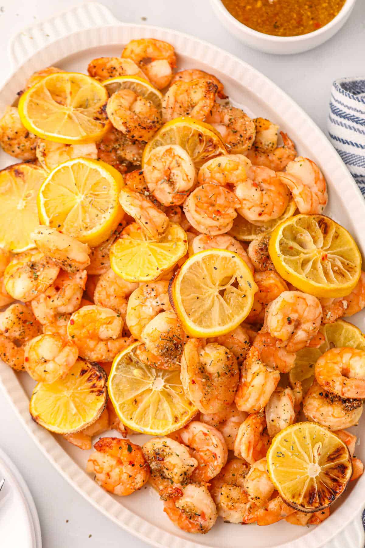 - Place lemon slices and butter slices on top of the shrimp.
