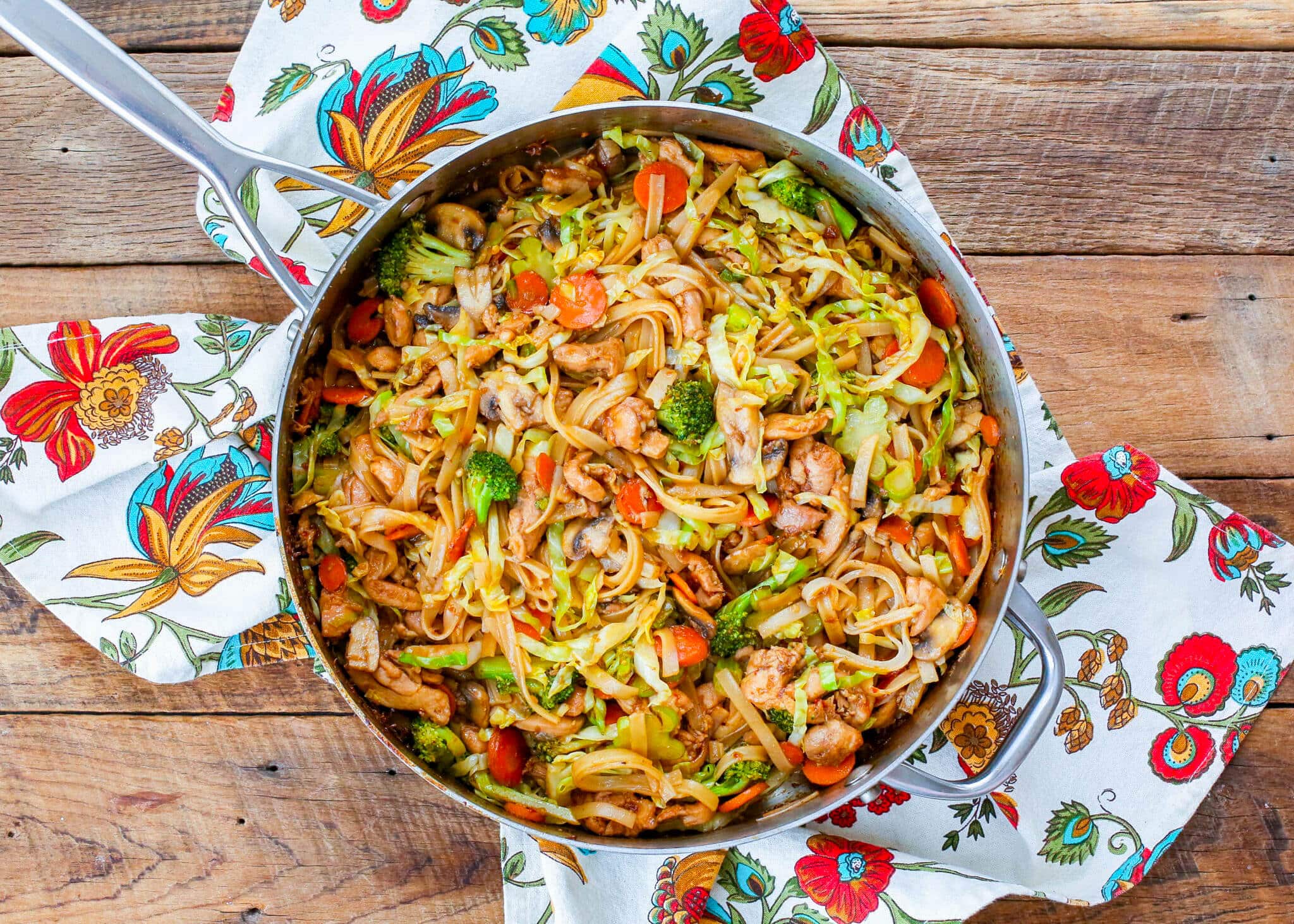 - Return chicken and vegetables to the skillet with noodles and toss to combine. Serve hot.