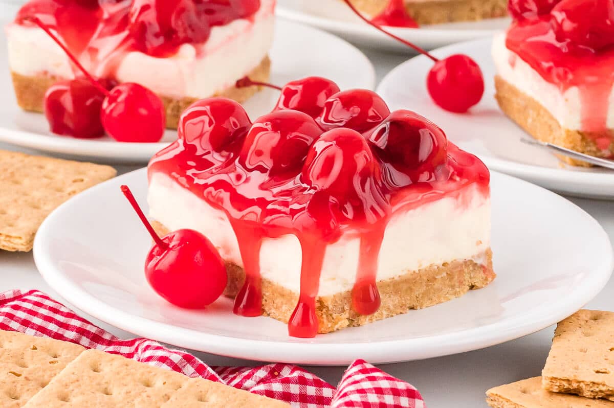 - Spread cherry pie filling on top of the cream cheese layer. Refrigerate for 2 hours before serving.