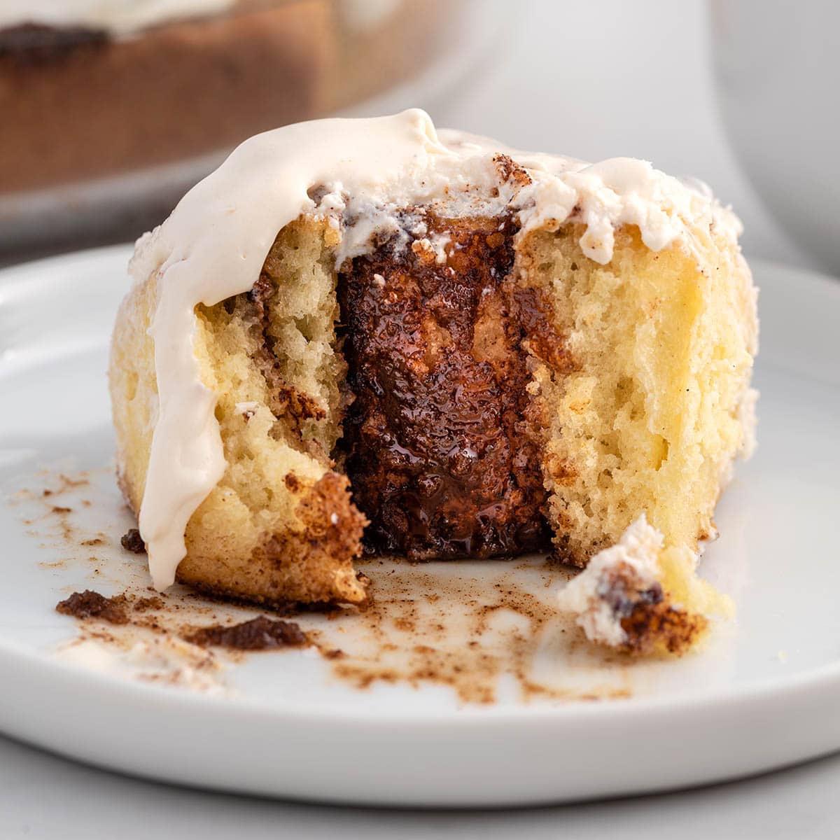 - Once your no yeast cinnamon rolls have come out of the oven you can frost your cinnamon rolls while they are warm with the cream cheese icing. *You can use a pinch of cinnamon to sprinkle onto the top of your frosted cinnamon rolls if desired for a garnish*