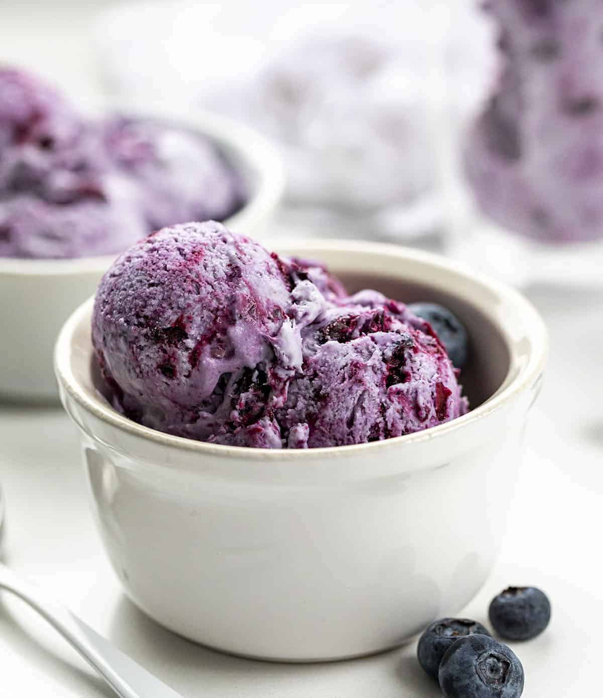 - Gently fold the sweetened condensed milk mixture and cooled blueberry sauce into the mixing bowl with the rest of the whipped cream.