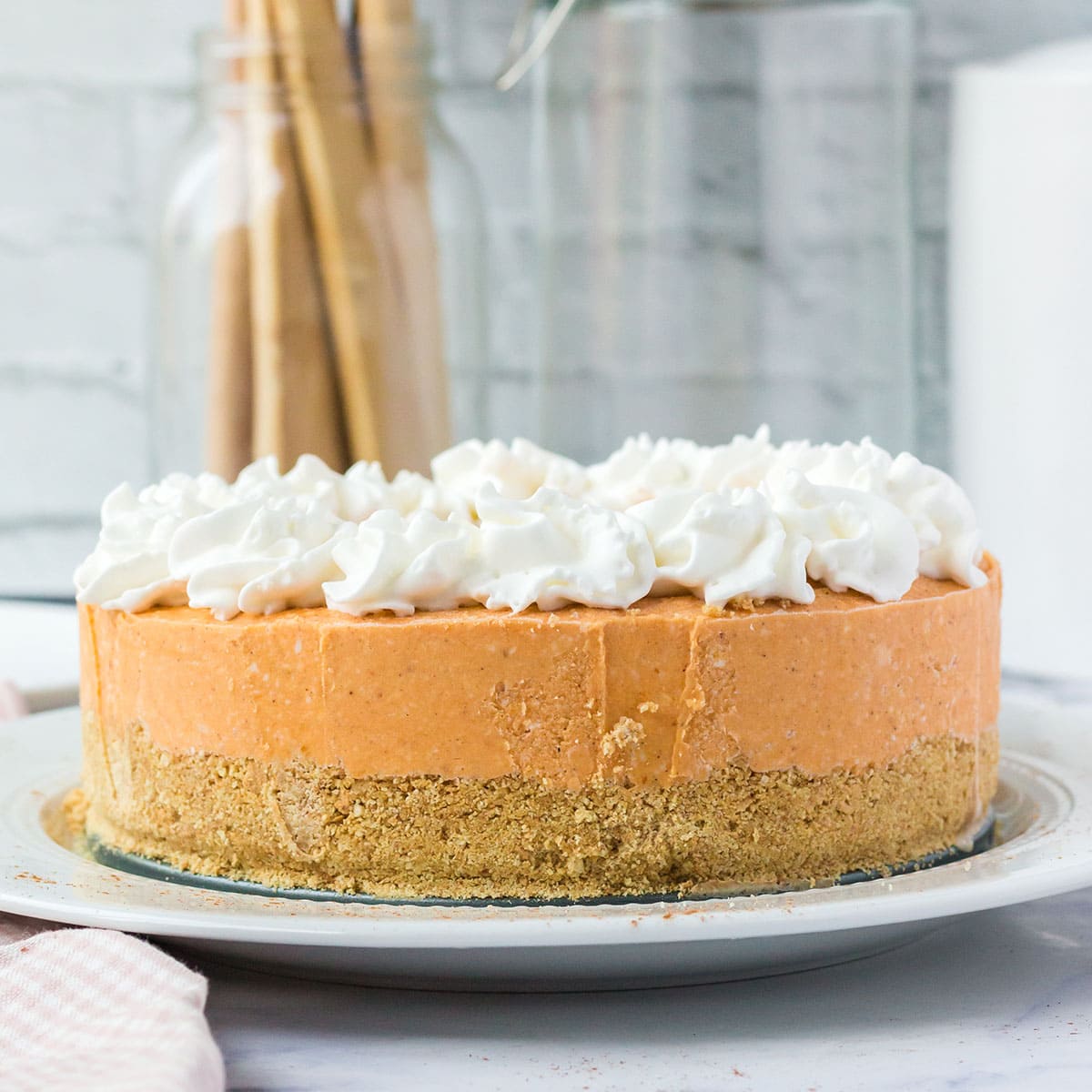 - Pour the cheesecake mixture onto the graham cracker crust and place the springform pan in the freezer for 4 hours, or until the center of the cheesecake is firm.