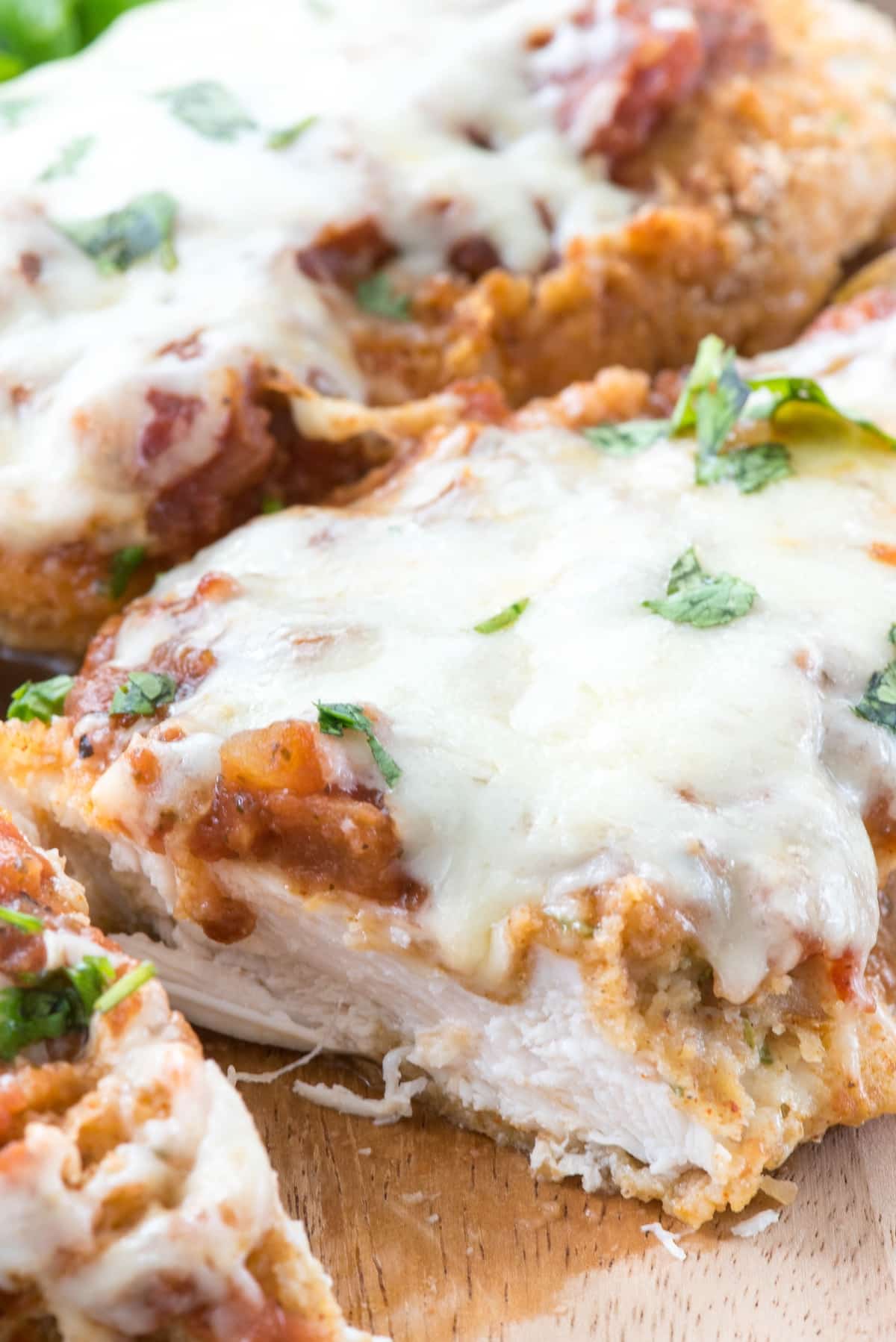 - Pour the salsa evenly over the chicken and top with cheese. Continue baking for 5-10 minutes or until sauce is bubbly and chicken is cooked through.
