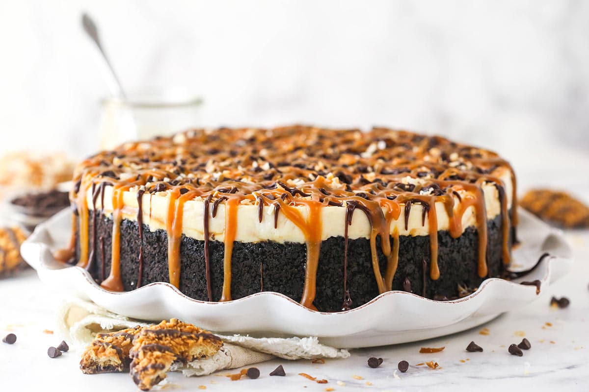 - Adding the remaining cheesecake filling and spread into an even layer. Refrigerate until cold and firm, 4-5 hours.