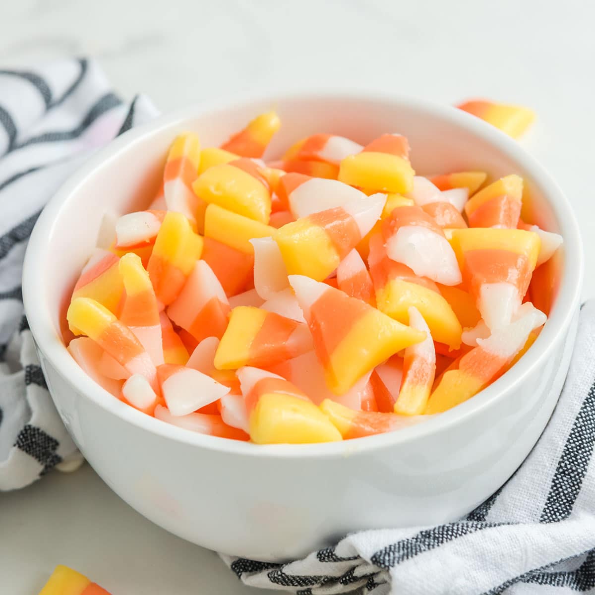 - Allow all candy corn pieces to sit on a baking sheet (you can transfer your Silpat mat to the baking sheet if easier) overnight to harden and dry out.