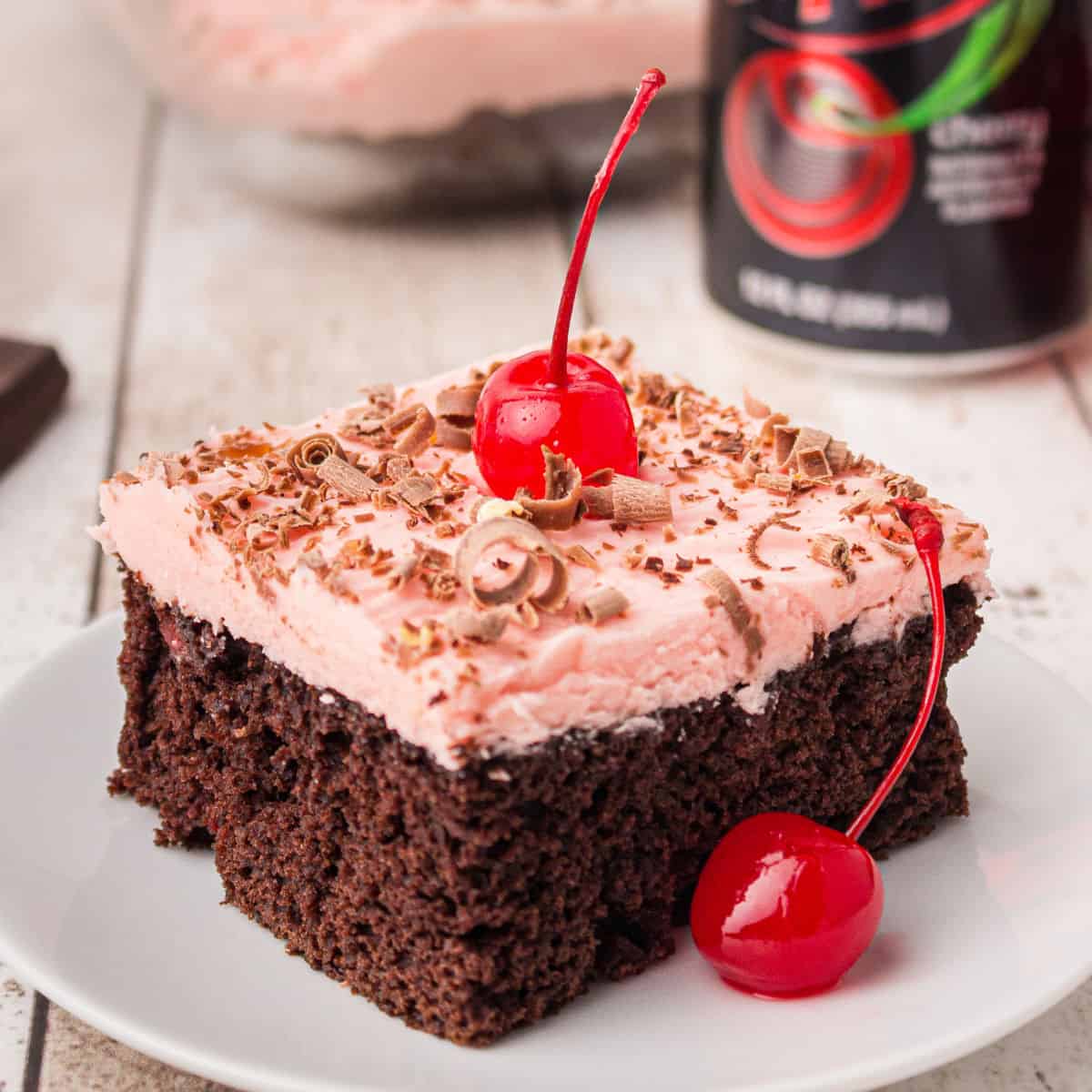 This cake combines rich chocolate and a fruity cherry flavor with a hint of Dr Pepper, making it a unique dessert experience.