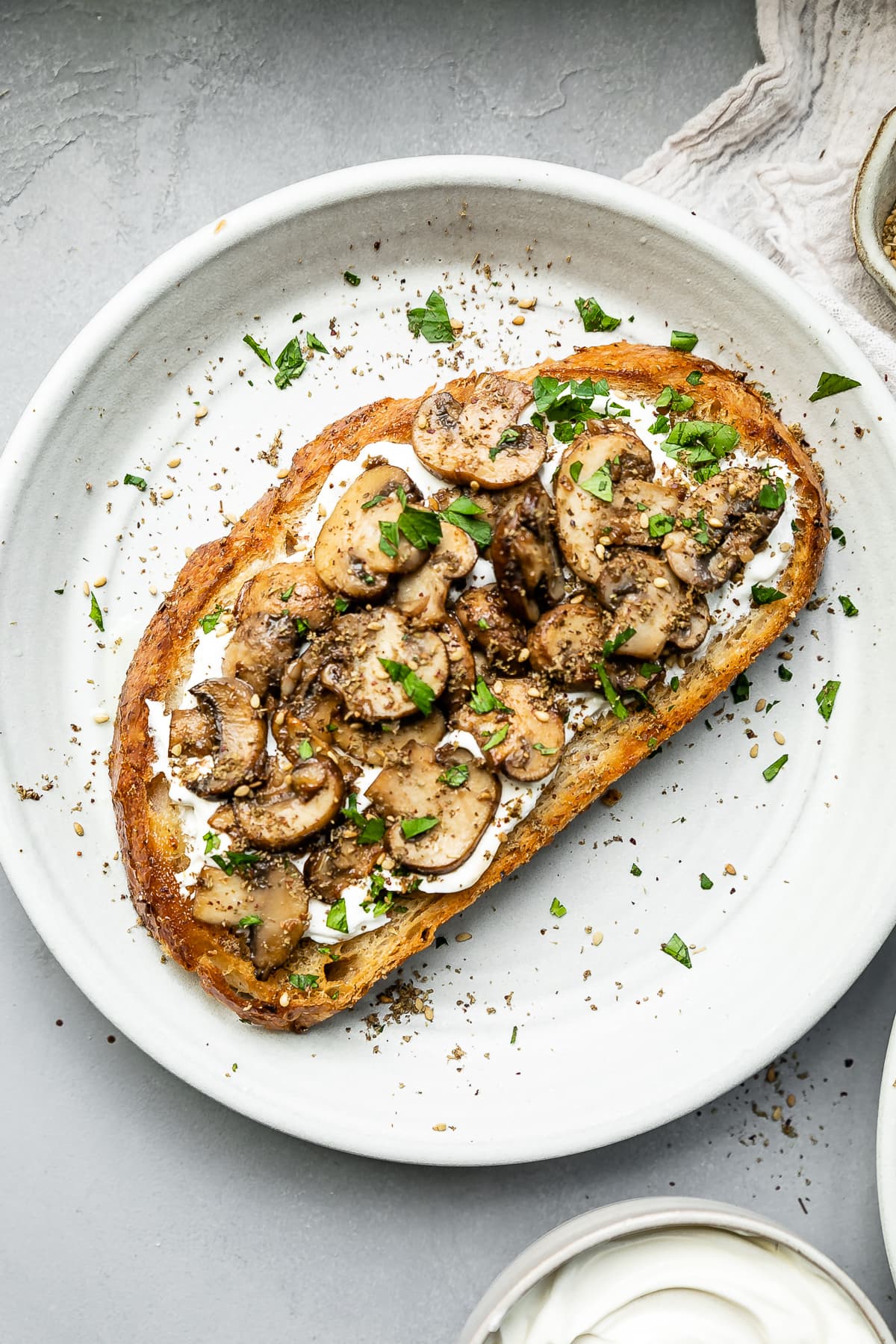 - On a toasted slice of bread, spread the labneh. Top with the mushrooms and sprinkle with Dukkah seasoning. Serve it with a runny egg for extra protein if desired.