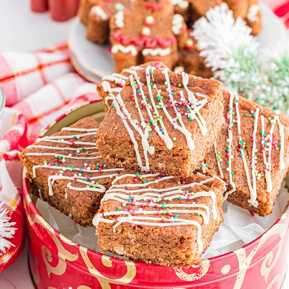 Enjoy these festive gingerbread blondies perfect for the holiday season.