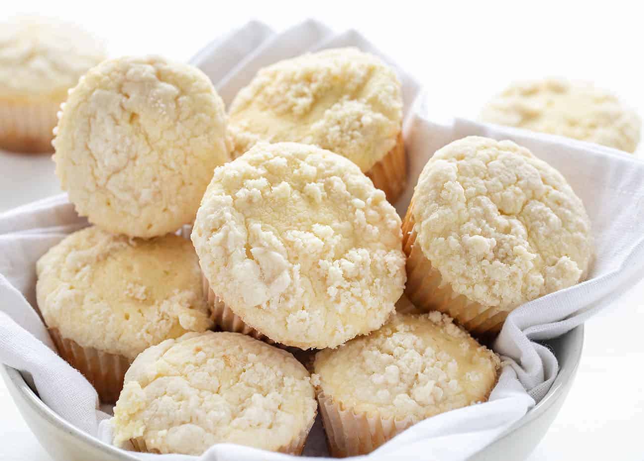 Delicious and moist cream cheese muffins with a swirl of cream cheese in the center, topped with a crumb topping.