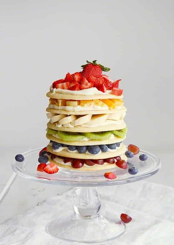 - Decorate with sliced fresh fruits in rainbow order. Chill for 30 minutes before serving.